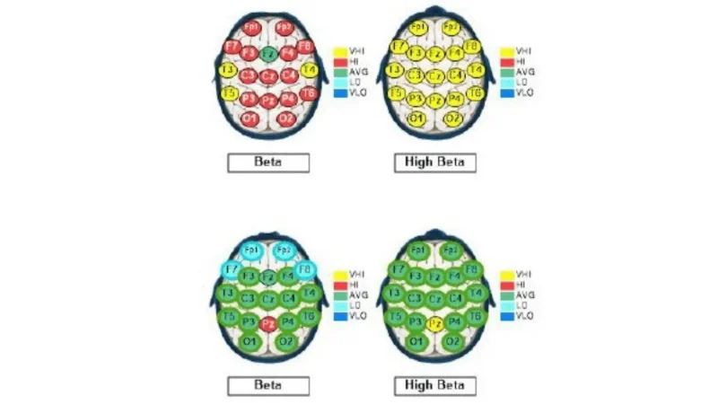 Iris’ QEEG Brain Map showed high levels of Beta and overstimulated brain communication. This is one of the four common patterns associated with OCD.