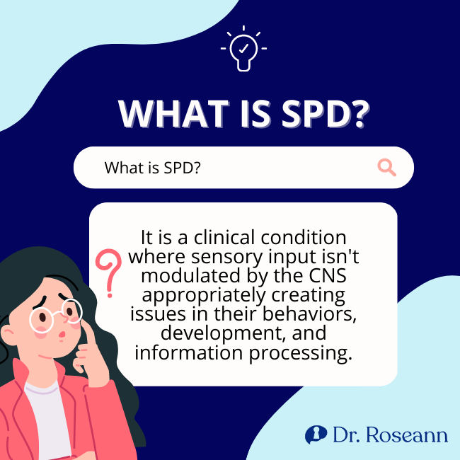 Children suffering from Sensory Processing Disorder (SPD) have difficulty responding to and receiving information obtained through their senses. It happens because their nervous system can't interpret sensory messages and match them to correlating behaviors or actions.